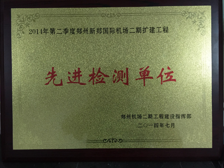 近年來(lái)多次被河南省建設(shè)廳和鄭州市建委評(píng)為工程檢測(cè)“先進(jìn)企業(yè)”和建筑節(jié)能與墻材革新工作“先進(jìn)企業(yè)”。2012年被中國(guó)建筑業(yè)協(xié)會(huì)評(píng)為全國(guó)建設(shè)工程質(zhì)量檢測(cè)行業(yè)“先進(jìn)單位”。