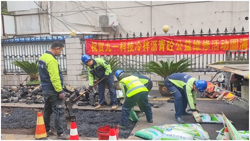 2024年11月13日上午,河南九一環(huán)??萍?a>股份有限公司技術(shù)經(jīng)理張欣偉、工程經(jīng)理王華亭等10余名工程人員,駕駛壓路機(jī)、切割機(jī)、振動機(jī)等工程機(jī)械及4噸冷拌瀝青砼進(jìn)入施工現(xiàn)場。上午10時,瀝青混凝土路面公益維修活動正式開始,經(jīng)過數(shù)小時精準(zhǔn)施工,公益活動圓滿結(jié)束。此次道路維修施工均使用河南九一環(huán)??萍脊煞萦邢薰咀灾餮邪l(fā)生產(chǎn)的環(huán)保型冷拌瀝青砼。